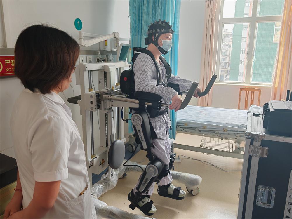 “对于脊髓损伤的患者,人体内信号无法良好地上下传导,向下肢发布的信号无法下达,通过‘脑想象+视觉触控’双向脑电触控方式,由计算机解码传递信号给机器人,让机器人产生与患者主观意图对应的活动,患者的下肢随之在机器人的带动下稳定活动。”中山三院院长、骨科学科带头人戎利民介绍。