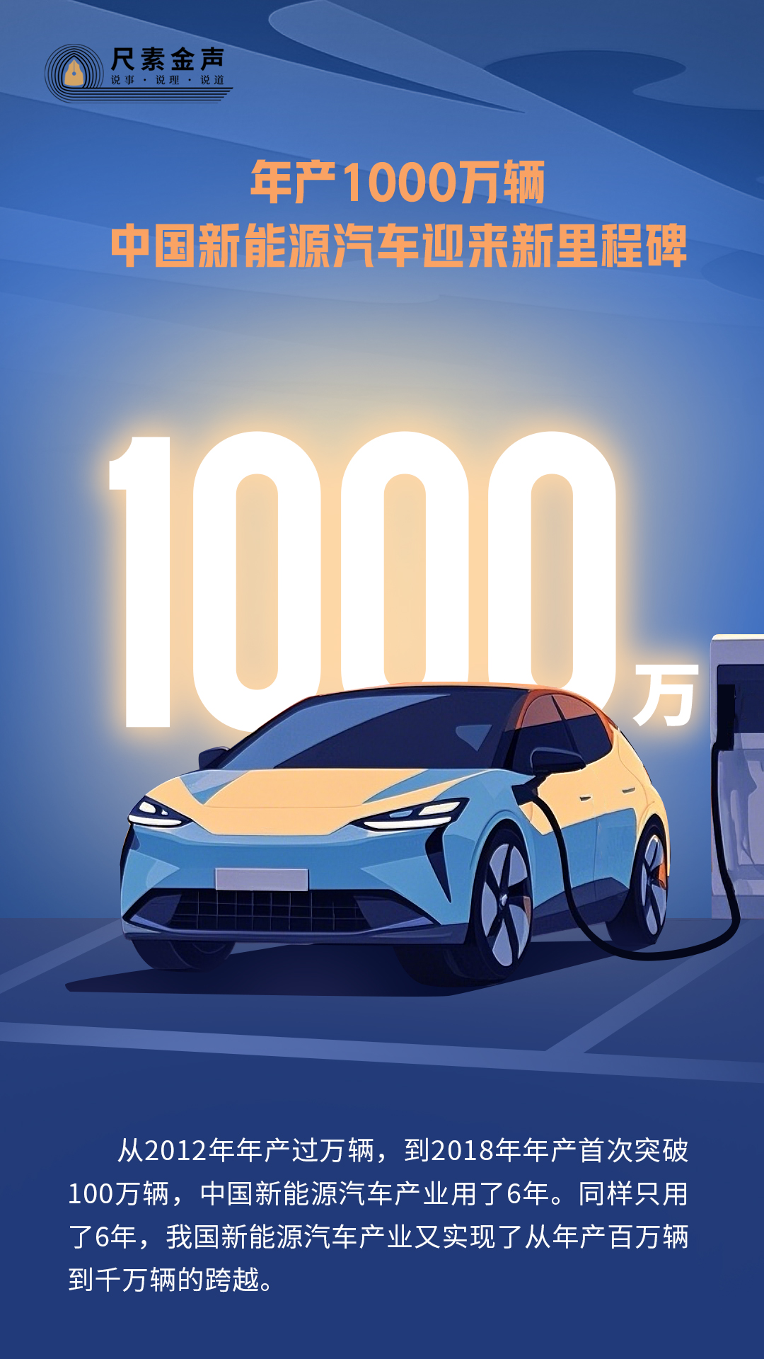 从2012年年产过万辆,到2018年年产首次突破100万辆,中国新能源汽车产业用了6年。同样只用了6年,我国新能源汽车产业又实现了从年产百万辆到千万辆的跨越。