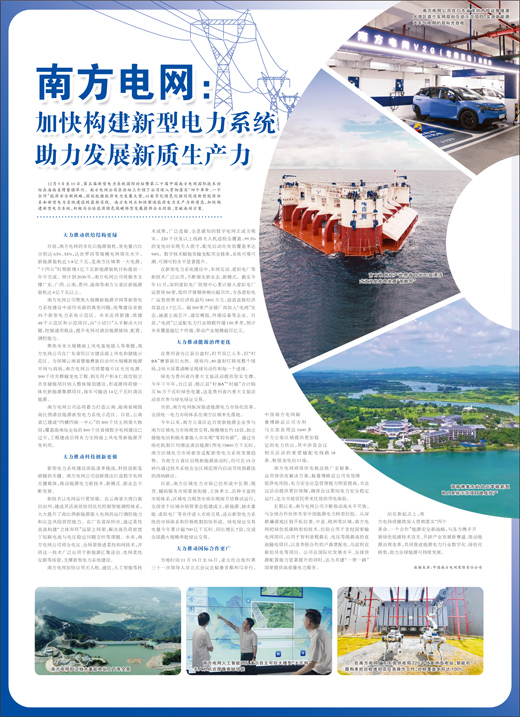 站在新起点上,南方电网将继续深入贯彻落实“四个革命、一个合作”能源安全新战略,与各方携手开展绿色低碳技术攻关、开辟产业发展新赛道、推动能源治理变革,共同推进能源电力行业数字化、绿色化转型,助力全球能源可持续发展。