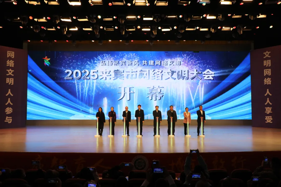 1月7日,2025年来宾市网络文明大会开幕式在广西科技师范学院举行。大会以“弘扬来宾新风 共建网络文明”为主题,积极培育网络文化新风尚,共建网上美好精神家园。