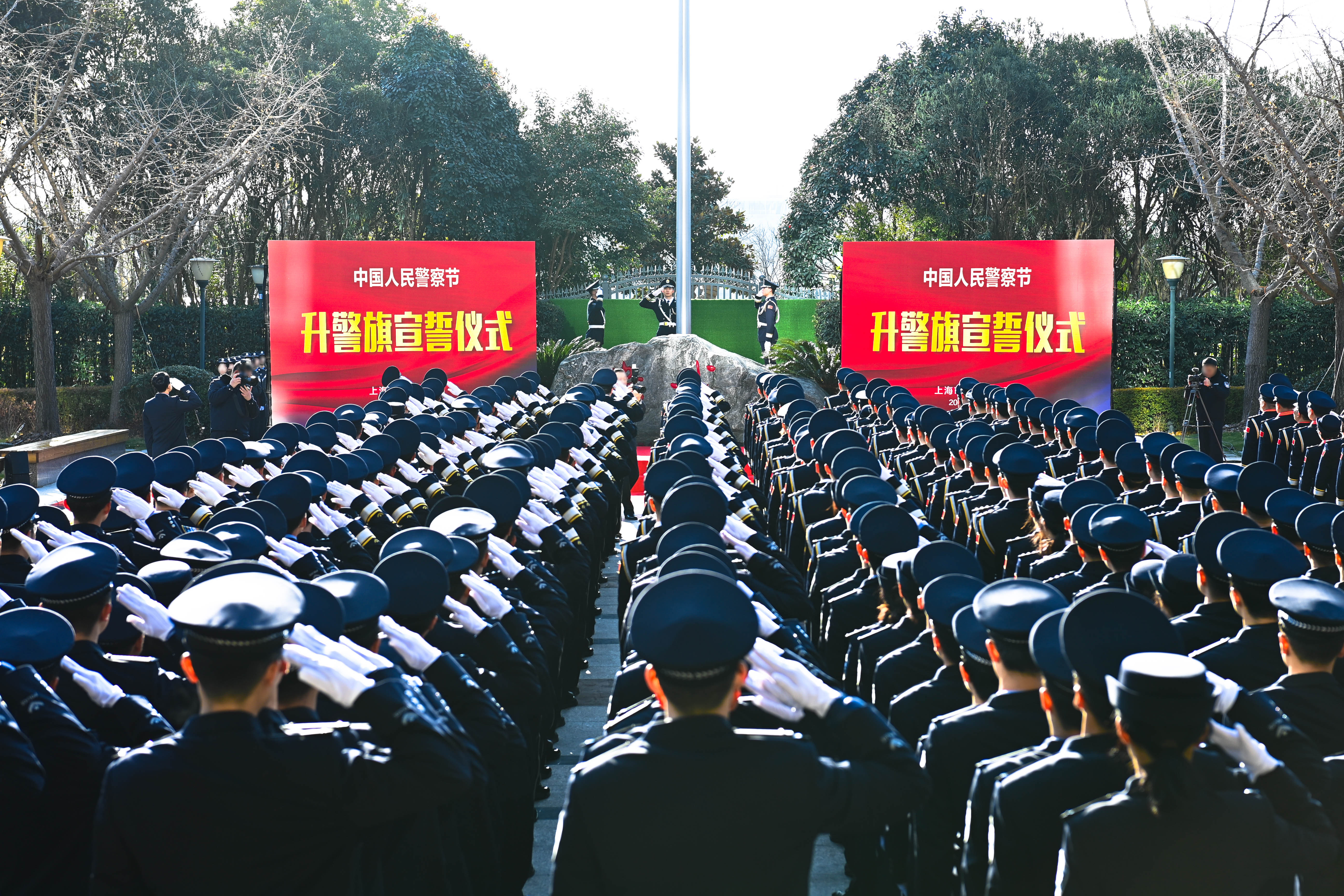 为迎接第五个中国人民警察节,1月10日上午,上海市国家安全局举行升警旗宣誓仪式。仪式现场,伴随着《国家安全战士之歌》,300多名身着警礼服的国安干警整齐列队,面向中国人民警察警旗敬礼并庄严宣誓。