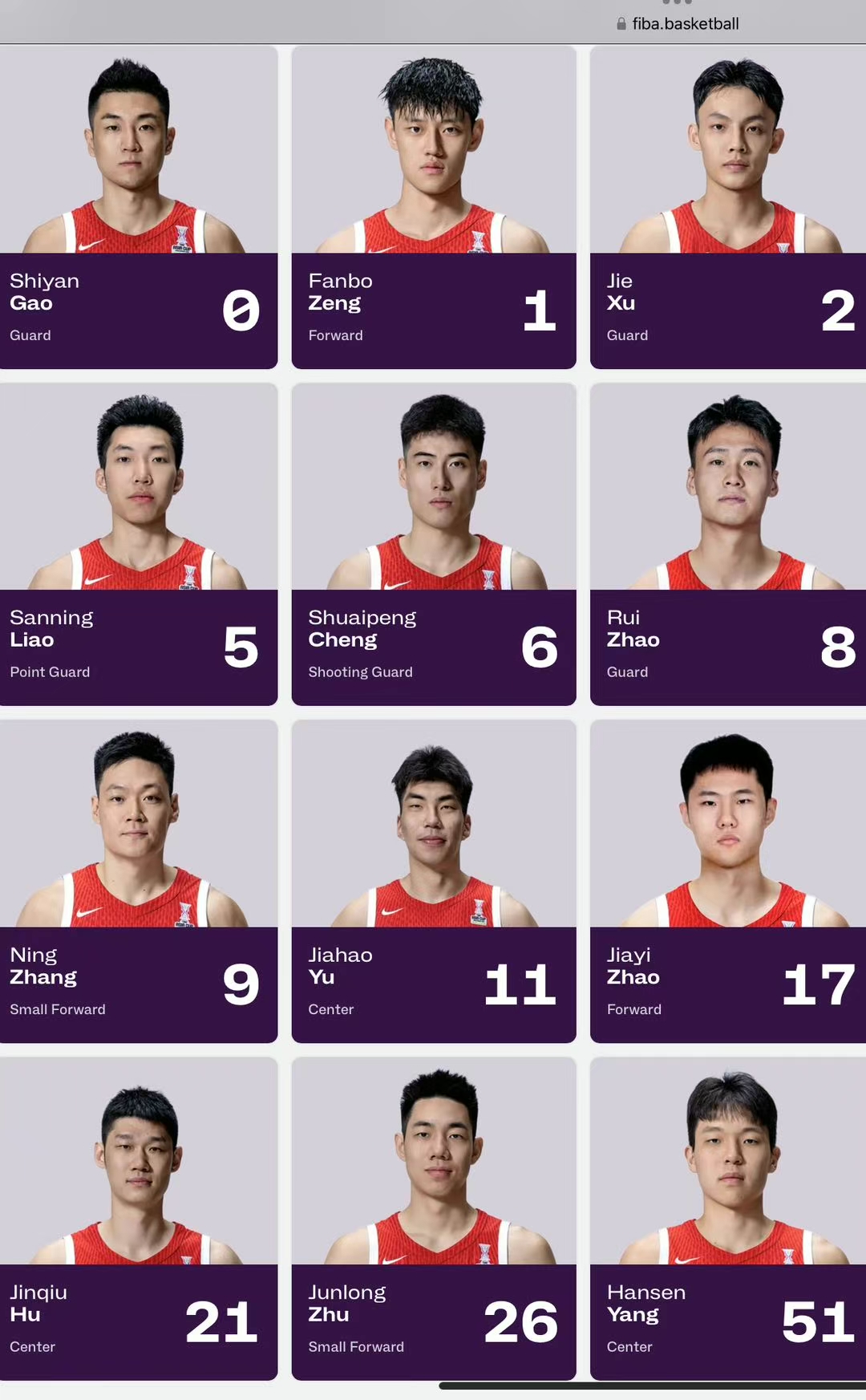 今天下午15:00,男篮亚洲杯预选赛第三窗口期最后一场比赛,中国队对阵关岛队,中国队公布12人名单:高诗岩、曾凡博、徐杰、廖三宁、程帅澎、赵睿、张宁、余嘉豪、赵嘉义、胡金秋、朱俊龙、杨瀚森。