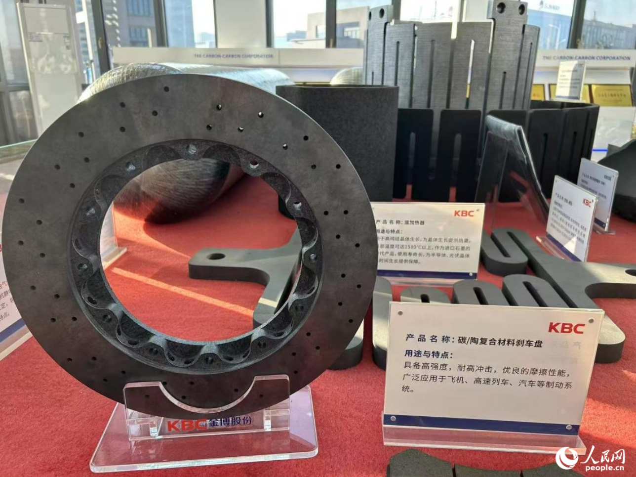 碳陶制动盘、卷对卷碳纸、碳/碳匣钵……湖南金博碳素股份有限公司展馆里,大小形态各异的新材料产品琳琅满目。