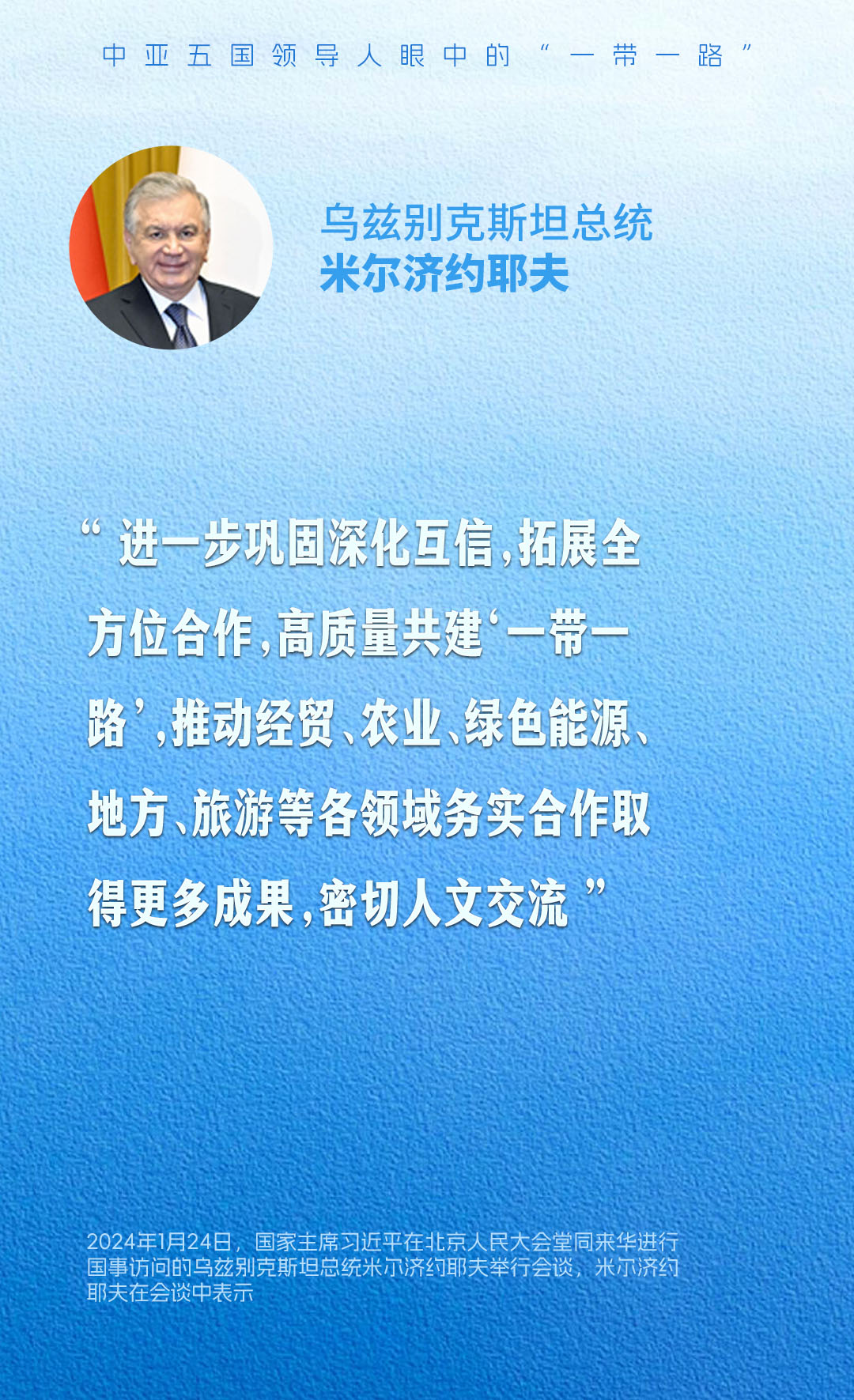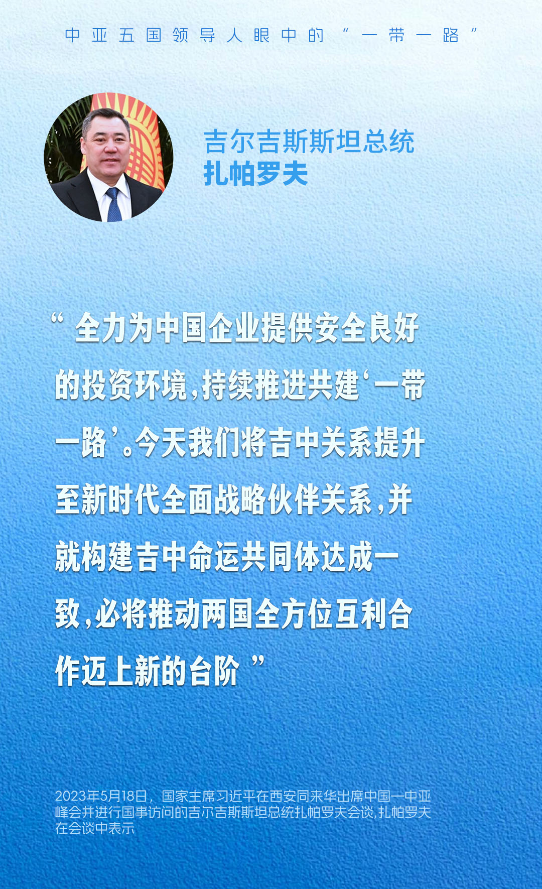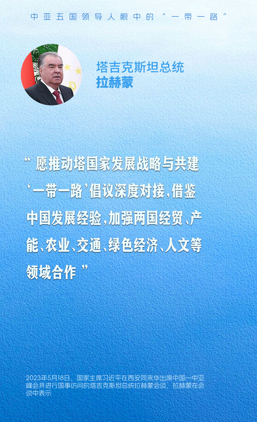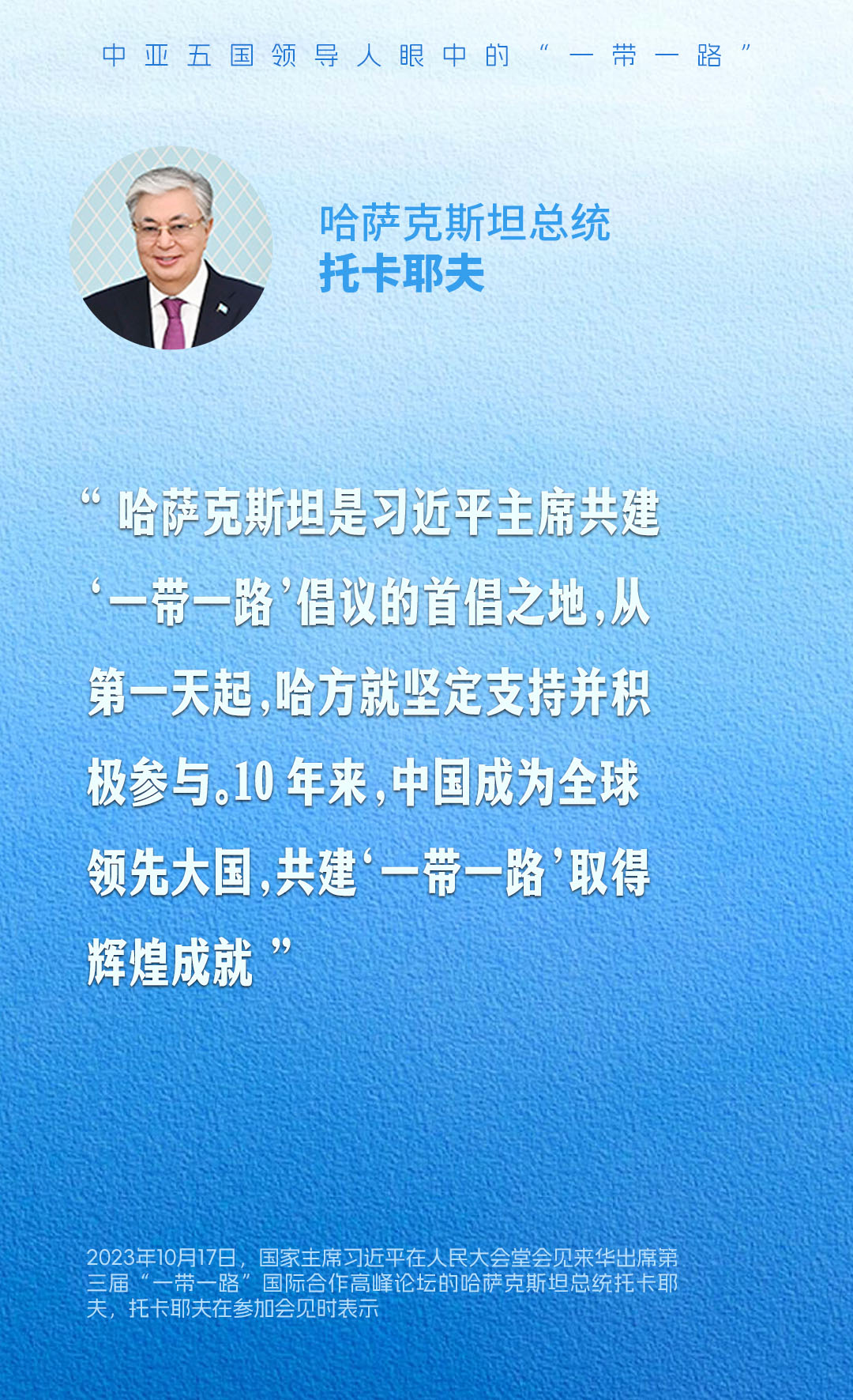 共建“一带一路”源自中国,成果和机遇属于世界。一组海报,带您感受中亚五国领导人眼中的“一带一路”。