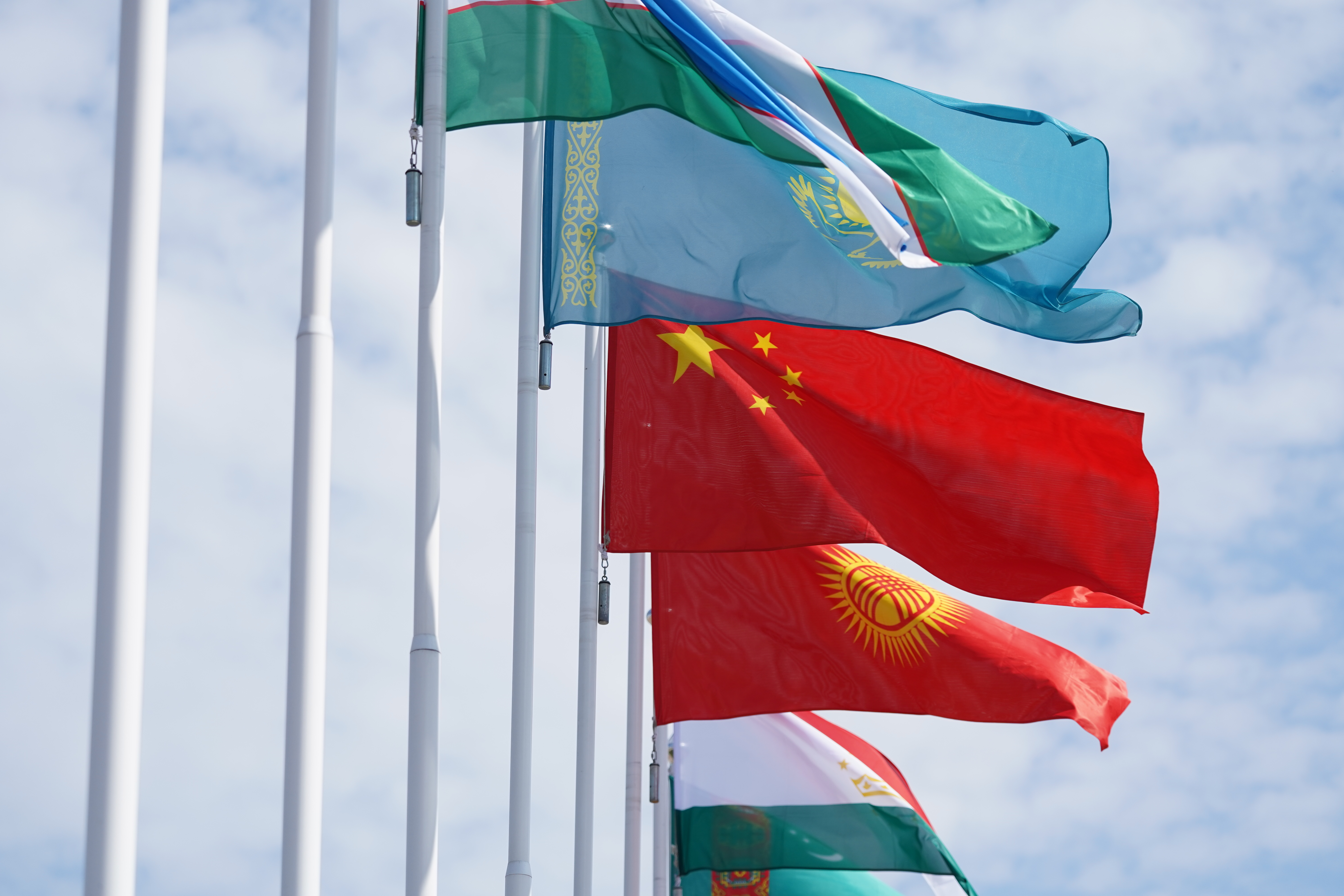 第二届中国—中亚峰会主会场独立宫前,与会国旗帜迎风招展。本报记者 巩晗 摄