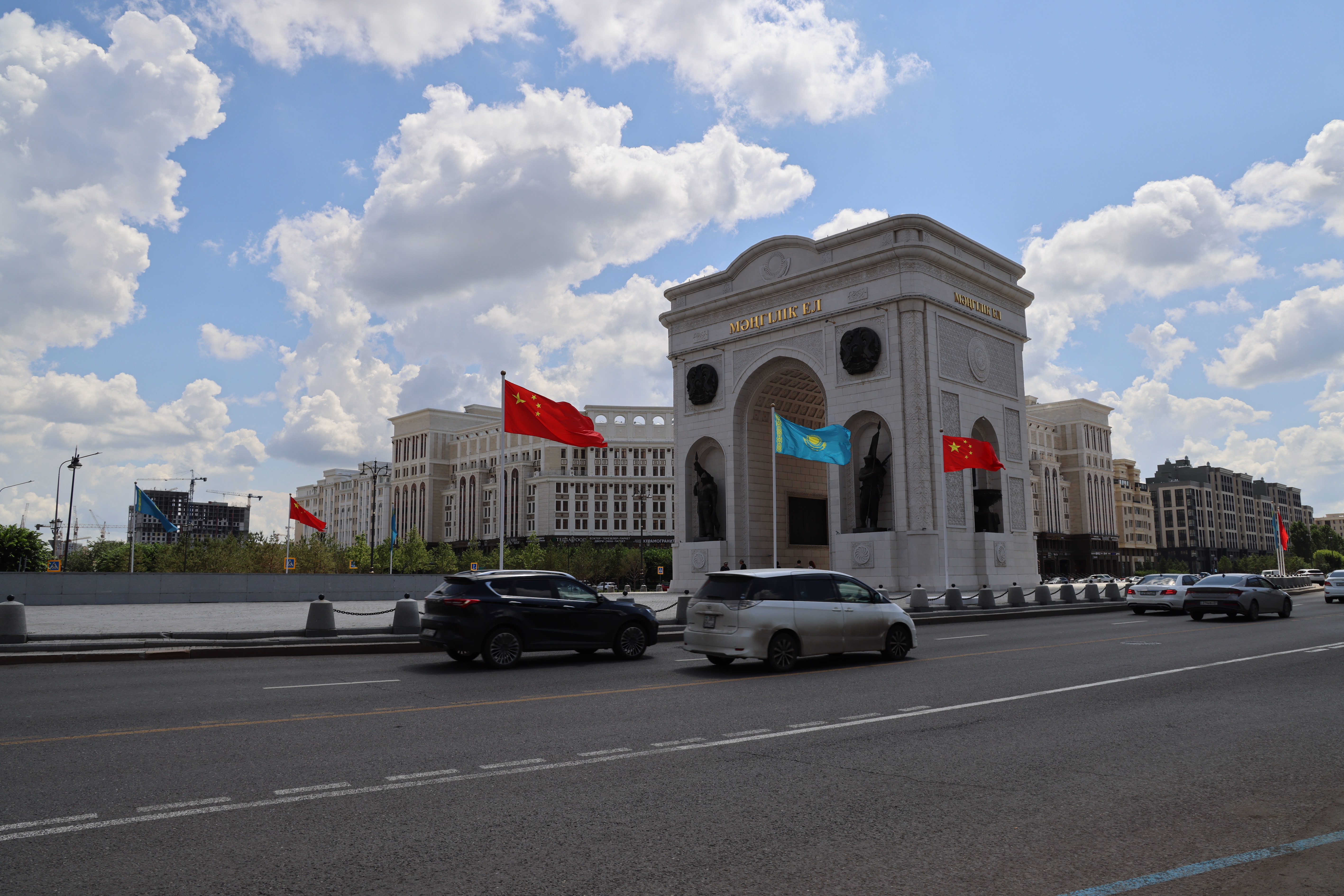 阿斯塔纳街头,处处可见中哈两国国旗,跟着人民日报记者,一起看现场。