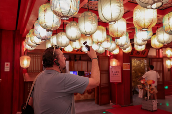 9月14日,考察团成员在西安长安十二时辰主题街区内拍摄采访。张武军摄