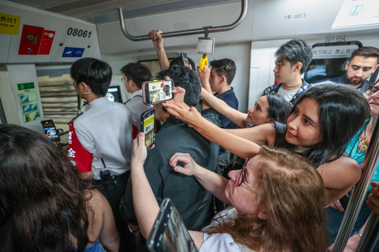 9月13日,考察团成员在西安无人驾驶智慧地铁8号线列车上参观拍摄。张武军摄