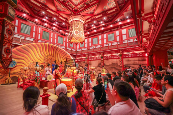 9月14日,考察团成员在西安长安十二时辰主题街区内观看演出。张武军摄