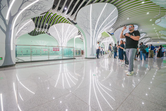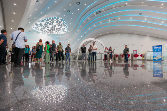 9月13日,考察团成员在西安无人驾驶智慧地铁8号线寒窑站内参观。张武军摄