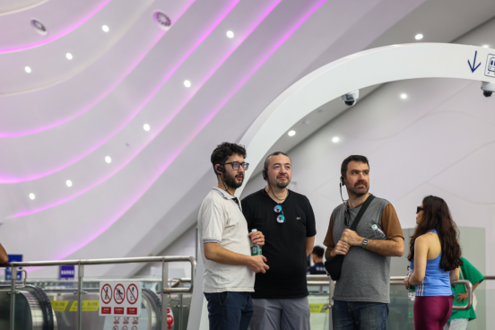 9月13日,考察团成员在西安无人驾驶智慧地铁8号线寒窑站内,采访正在西安市轨道交通集团有限公司进行学习培训的哥伦比亚波哥大地铁一号线项目赴华学习团成员。张武军摄