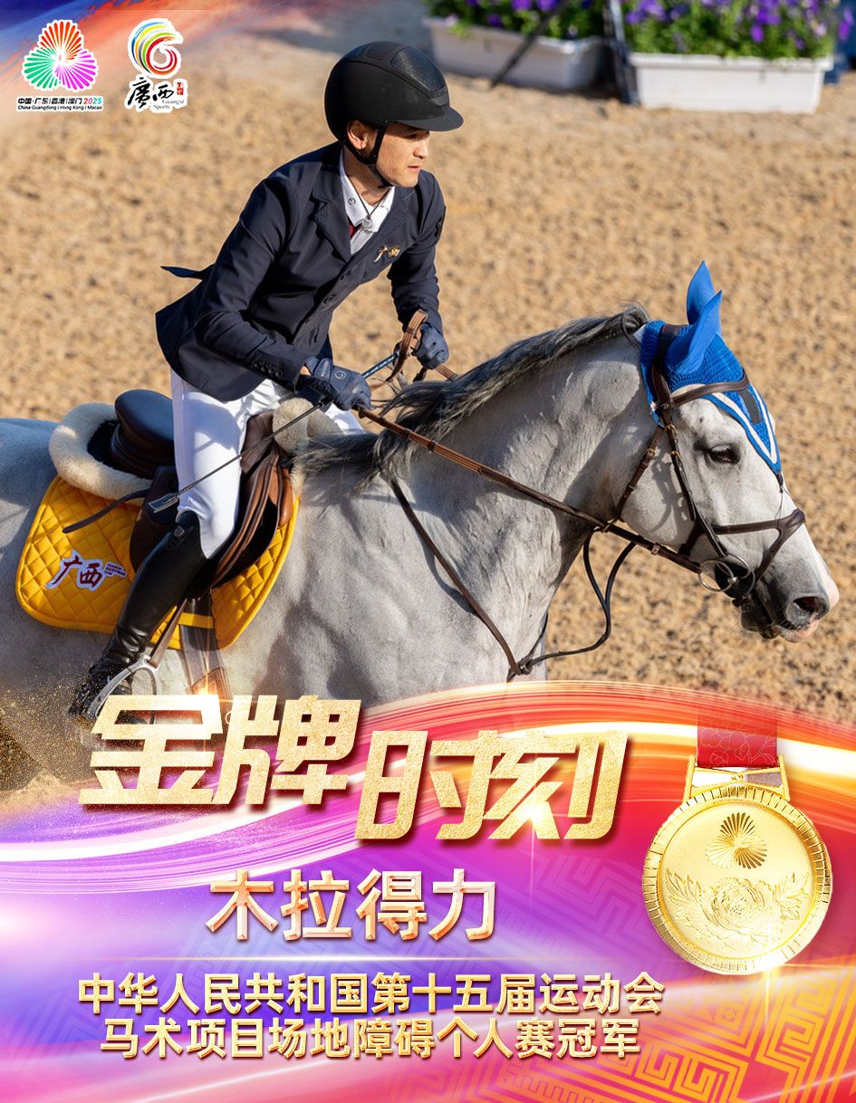 记者从广西壮族自治区体育局获悉,11月19日,在第十五届全国运动会马术项目场地障碍个人赛决赛中,广西运动员木拉得力勇夺冠军,收获本届全运会马术项目第二金,为广西体育代表团斩获本届全运会第九枚金牌。截至目前,广西体育代表团本届金牌数、奖牌总数均已超过上届全运会。
