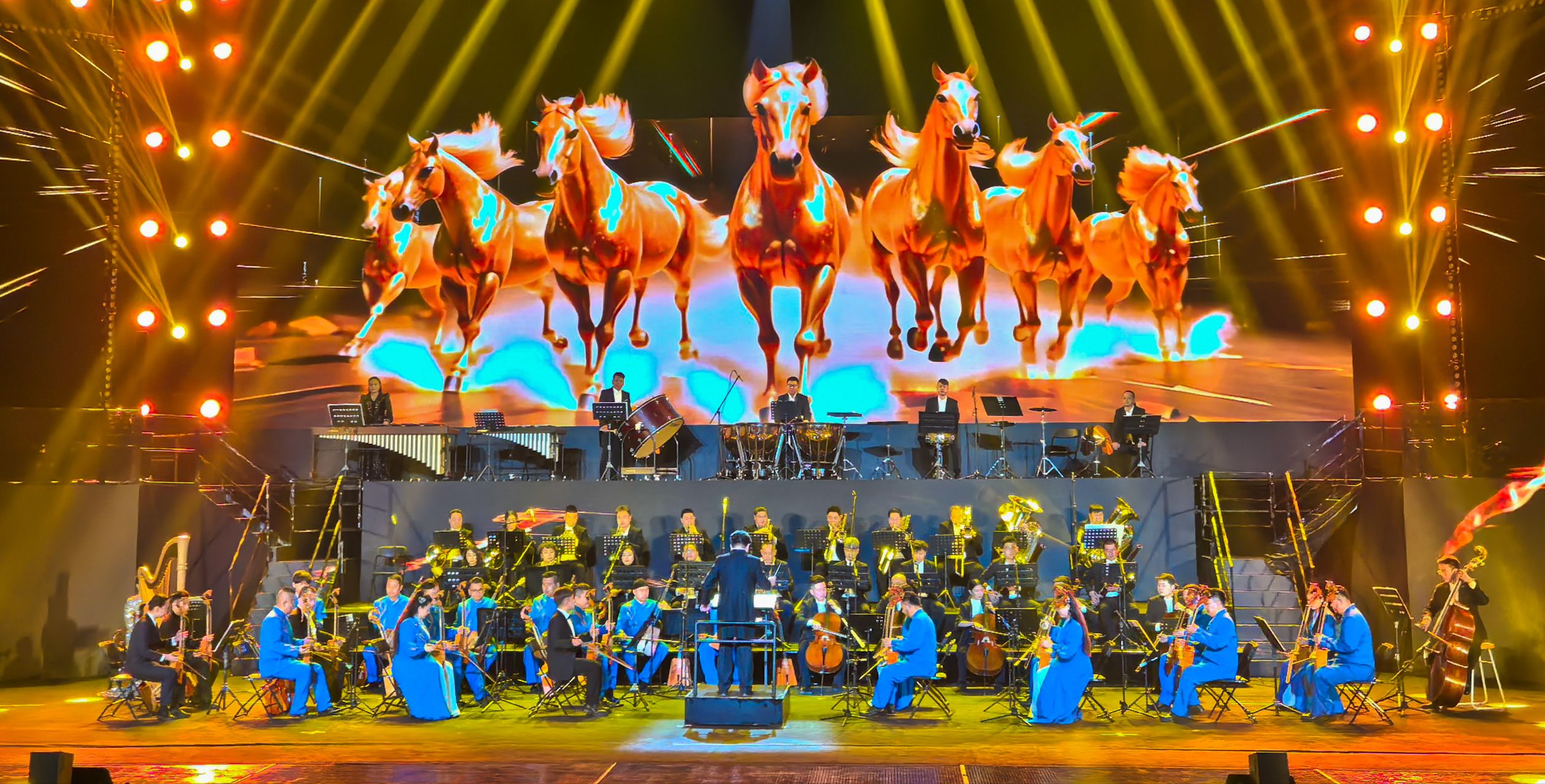 本次音乐会由内蒙古自治区党委宣传部主办。由鄂尔多斯市委宣传部、鄂尔多斯市文化和旅游局、乌审旗委和政府等承办。作为推动国有文艺院团市场化转型的重点实践载体,自治区党委宣传部精准整合区内优质文艺资源,特邀乌审旗马头琴交响乐团、鄂尔多斯市乌兰牧骑两大精锐院团联袂献艺。本次活动力邀知名指挥家叶尔达执棒,集结国家一级演奏员及新生代艺术家组成专业演出矩阵,以匠心演绎叩击内蒙古文化的深厚底蕴,彰显其与时俱进的时代价值。
