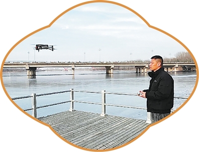 曲成成正在操作无人机巡河。 |
