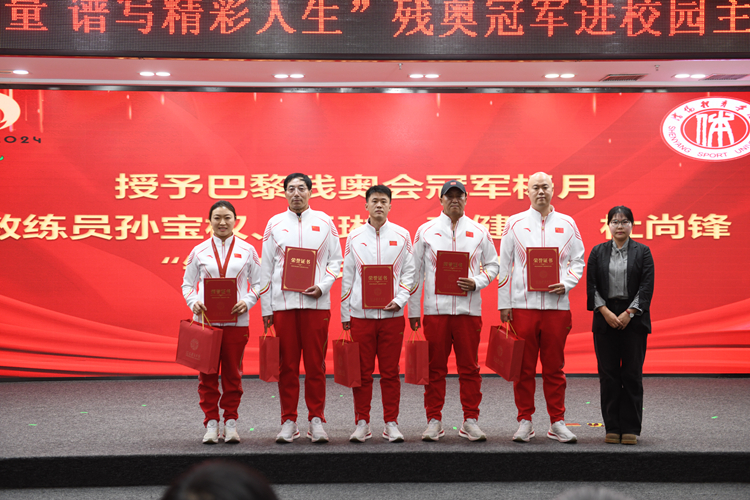 为残奥冠军和教练中的沈阳体育学院校友颁发“沈阳体育学院杰出校友证书”