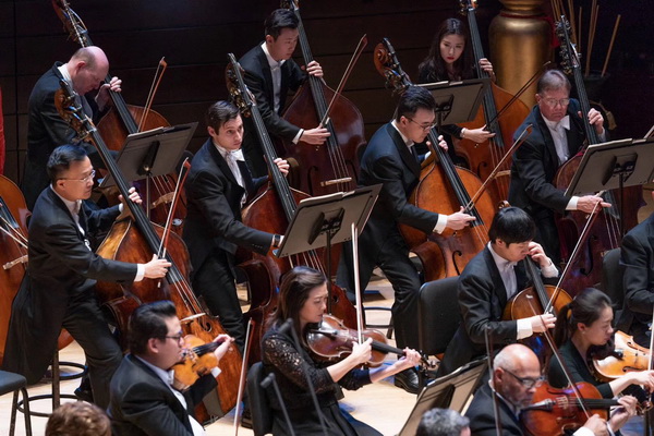 当晚,这个拥有2500个座位的音乐厅上空悬挂着两条中国龙,费城交响和上海爱乐用104人的联合阵容世界首演《京剧幻想》。美国乐手与中国乐手穿插而坐,他们有着不同的肤色、不同的文化背景,却你中有我,我中有你,共同编织出和谐的音符。
