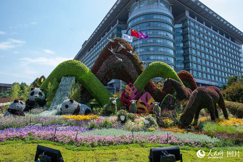 建党百年主题花坛“美丽中国”以锦绣江山为主景,勾勒出祖国雄伟壮阔的美丽画卷,寓意祖国江山永固,基业长青。(人民网记者翁奇羽 摄)
