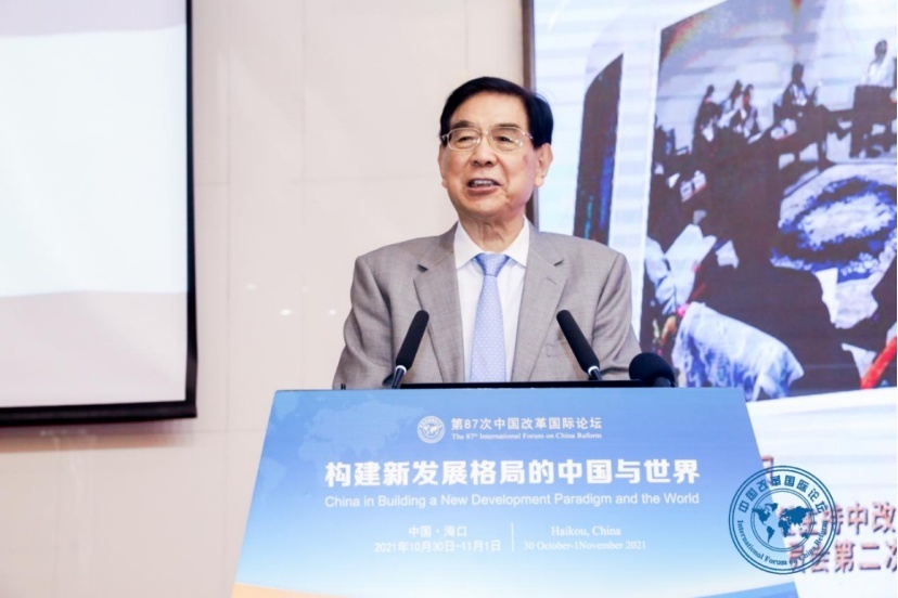 国务院发展研究中心原主任、中改院学术委员会主任王梦奎在开幕致辞中指出,中改院立足海南,面向全国,走向世界,经过三十年来的努力,已经成为在全国有相当大的影响,在国外也有知名度的中国改革智库。这是值得高兴和庆贺的。王梦奎指出,今天,中国的发展已经和外部世界紧密联系在一起,世界经济发展离不开中国这个日益发展的大经济体,中国的高质量持续发展也离不开世界。面对国际格局深刻复杂变化,中国惟有坚定地走改革开放之路,坚持高水平开放,才能比较顺利地实现现代化建设的宏伟目标;这是中国自身持续的高质量发展的要求,也将为经济全球化注入新的动力。