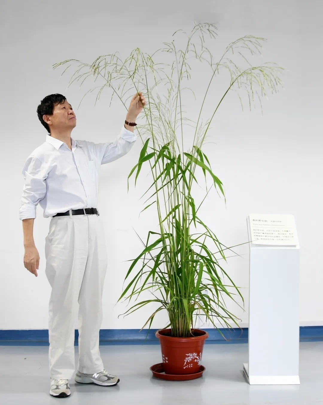 李家洋院士在查看野生稻