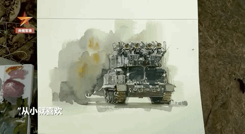 祁逸菲的手机里珍藏着几十幅水彩画。那是她看着网上的兵器图片,一笔一笔用心画出来的。想象力丰富的她曾描述过一个画面:“白发苍苍的时候,我站在装甲车旁看夕阳。”
