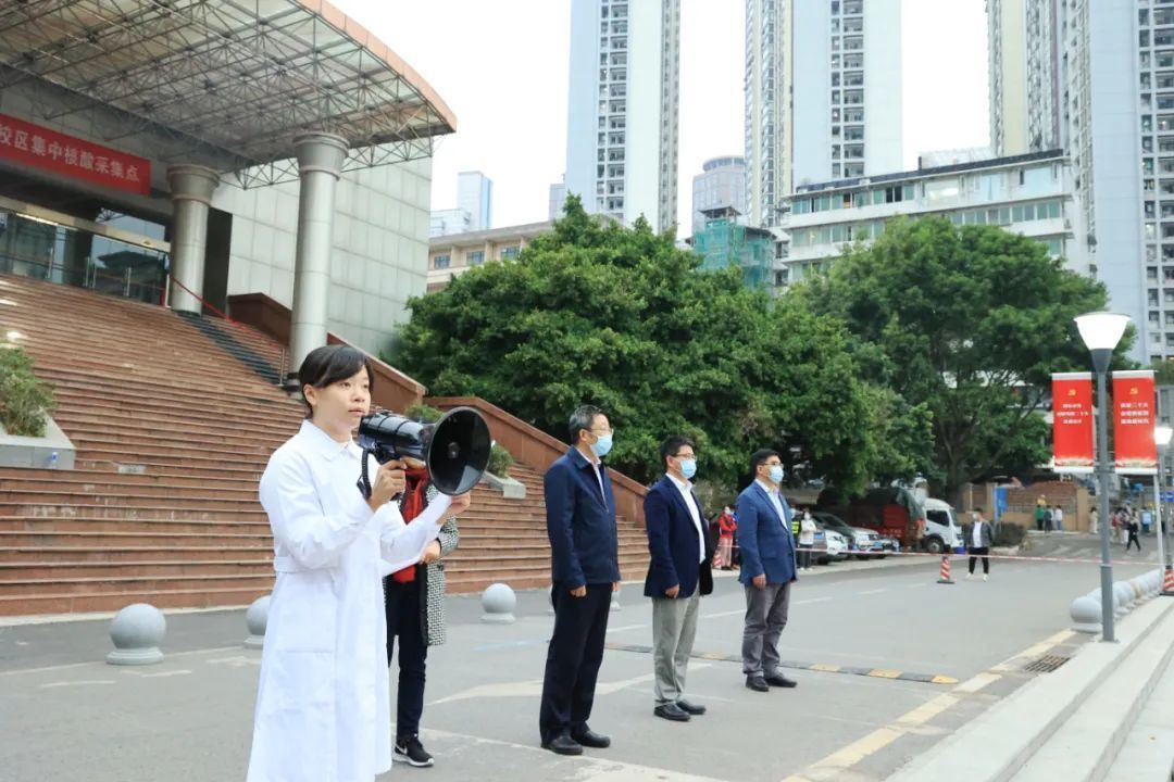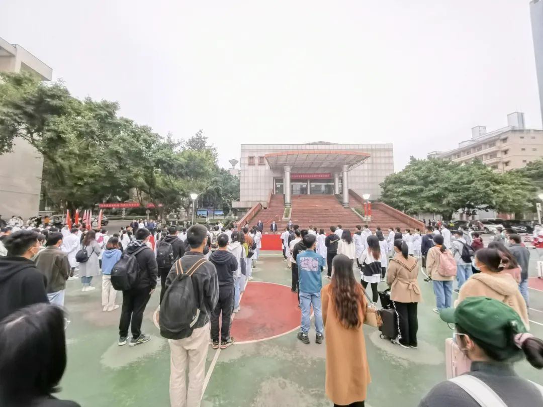 11月12日下午5点30分,重庆医科大学疫情防控志愿者出征仪式在袁家岗校区篮球场举行,由1000余名师生组成的志愿者队伍即将奔赴重庆市疫情防控各条战线。