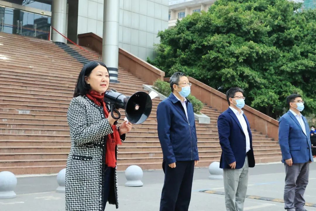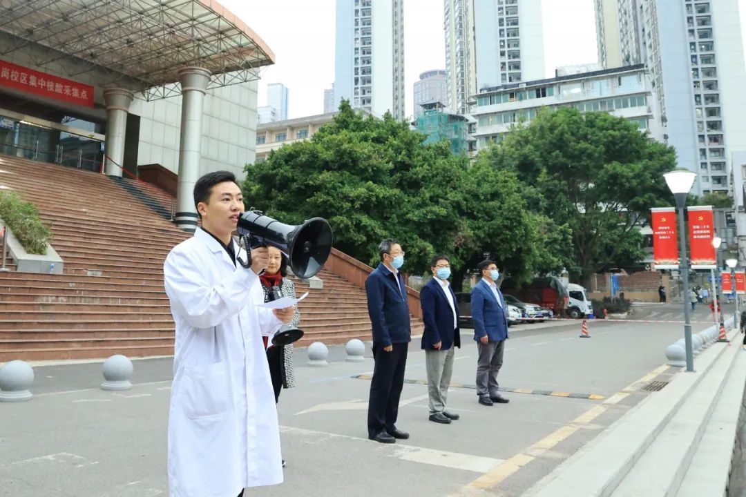 校党委书记覃正杰掷地有声地宣布:“重庆医科大学疫情防控志愿队出征!”全场响起了热烈的掌声。