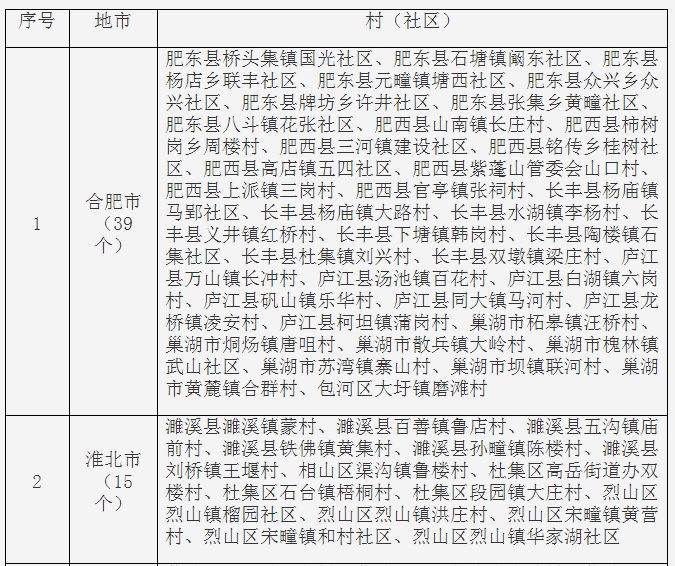 为深入贯彻党中央关于全面推进乡村振兴的决策部署,积极打造乡村振兴的安徽样板,在全省组织开展了“115”乡村振兴示范工程。经县级申报、市级遴选、省级评审、网站公示等程序,同意肥东县等15个县(市、区)为省乡村振兴示范县创建单位、肥东县长临河镇等100个镇(乡)为省乡村振兴示范镇创建单位、肥东县桥头集镇国光社区等499个村(社区)为省乡村振兴示范村创建单位,现予以公布。
