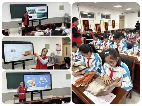 随后,志愿者们来到津南区小站第四小学活动室,和孩子们开展图书共读会活动,手把手教孩子们制作“红船”拼图,讲解“红船精神”的由来,同时与孩子们共同阅读相关书籍、分享读书心得,在潜移默化中帮助孩子们培养良好的阅读习惯,涵养爱党爱国情怀。“今天的读书会满足了我的阅读小心愿,以后我要多学习书中的知识,成为国家有用之才。”小站四小学生郑熙蕊开心地说。