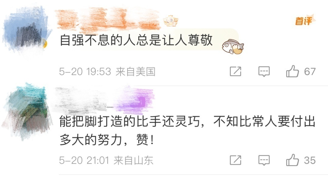 小时候因触电失去双臂后