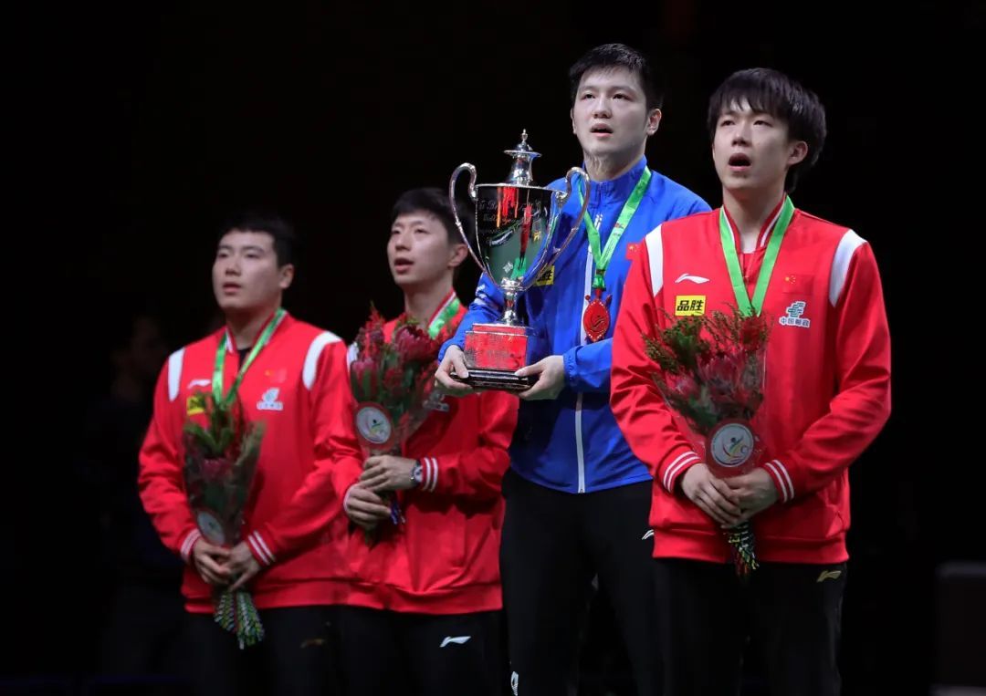 德班世乒赛男单决赛开始前,国际乒联为马龙颁发了一座圣·勃莱德复制杯——这是对他取得世乒赛男单三连冠成就的表彰,此前,中国队只有庄则栋前辈获此殊荣。
