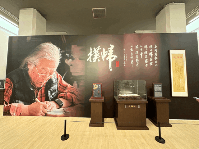 91岁高龄的彭祖述是中国书法家协会会员、长春市微刻协会主席,也是吉林省首位中国工艺美术大师。此次赴京,他带来了历经十二年原创的100方松花石砚及其相关的书法、题跋、拓片等作品,还有他与儿子耗时十余载收集、整理并请资深专家共同研究、合力推荐的部分松花石样板石等,堪称一次名副其实的“松花石盛宴”。