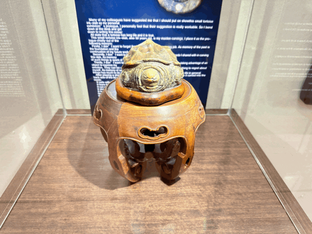 中华炎黄文化研究会砚文化联合会常务副会长、亚太地区手工艺大师刘克唐表示,彭祖述的砚台作品装饰性特别强,令人震撼。不仅将文化修养和书法篆刻融入其中,又同时兼顾了实用与美学双重特点,打破了对以往松花砚传统的认知。