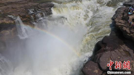 黄河壶口瀑布出现彩虹美景。宋洋波 摄