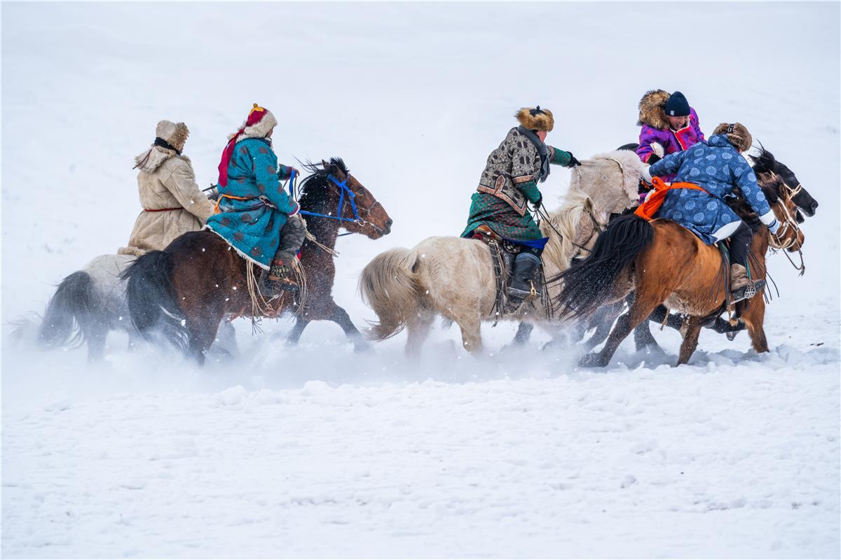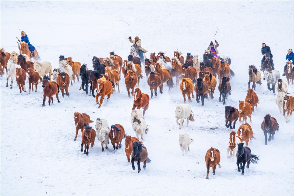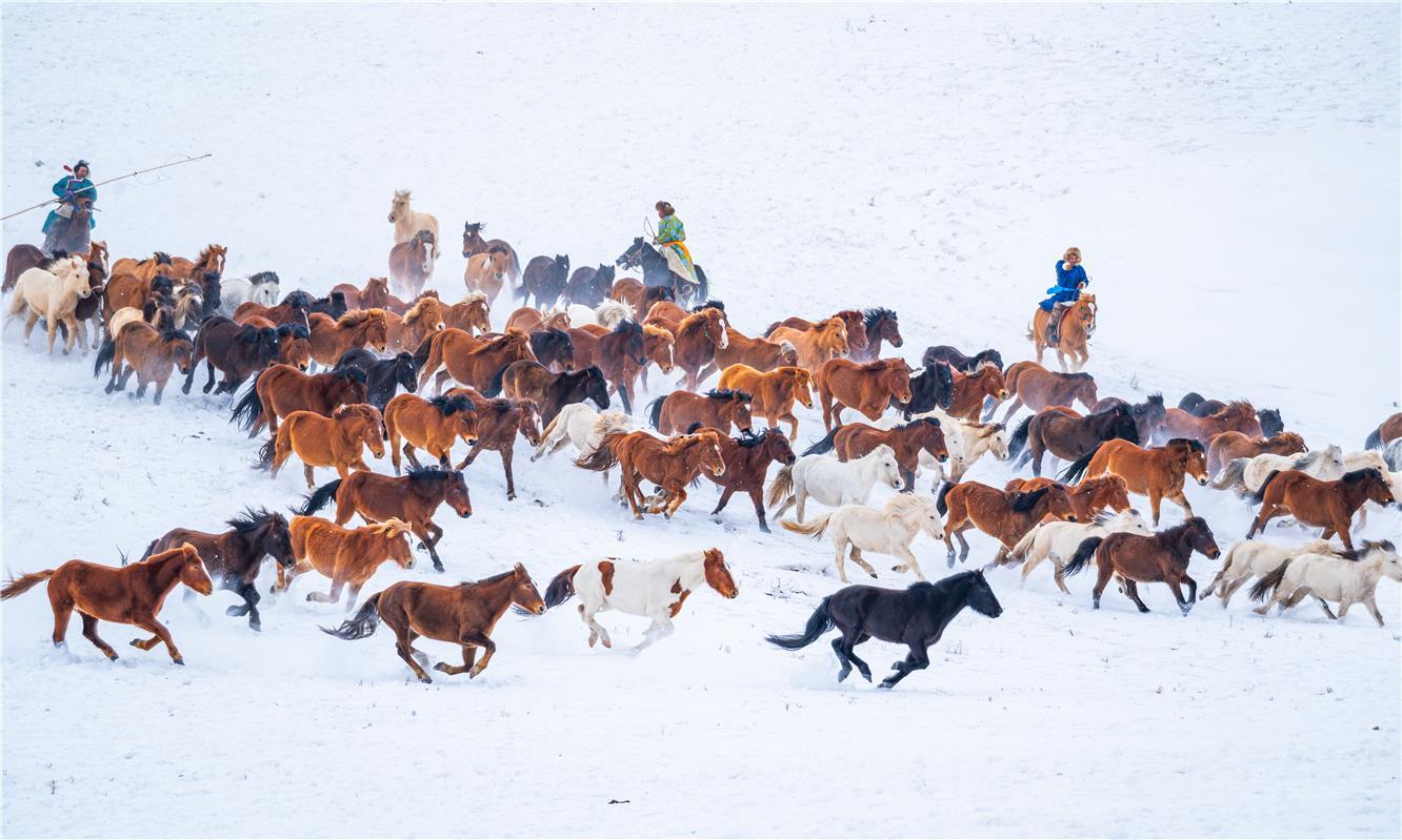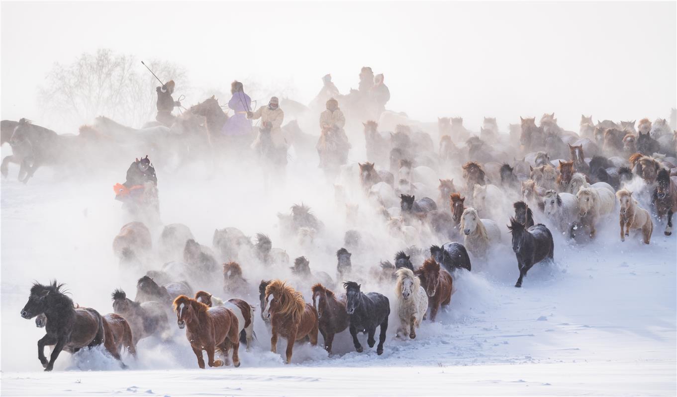 1月19日至21日,赤峰市克什克腾旗2024小红山子嘎查冬季冰雪摄影节举行,上百匹蒙古马在厚厚的积雪中飞驰,马蹄扬起的雪花弥漫空中,展现出马踏飞雪的冬日壮丽景象。