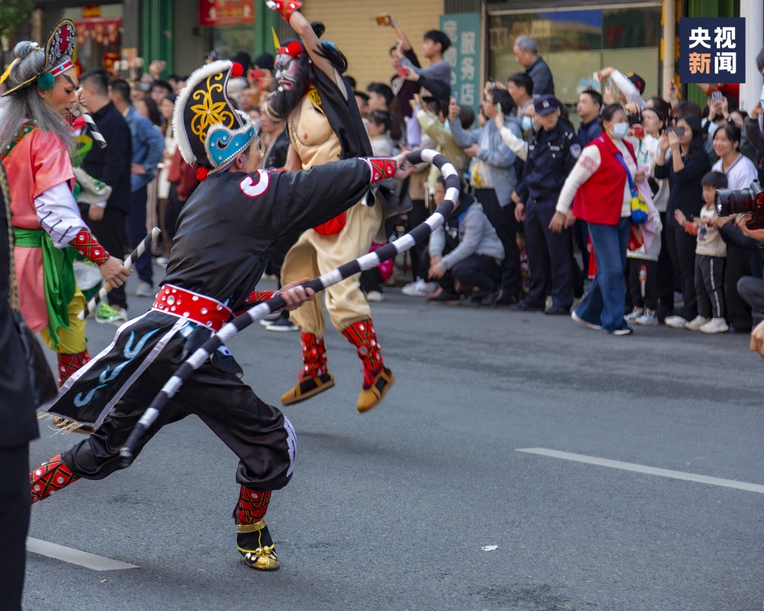 潮汕的英歌舞表演会持续整个正月,被网友称作“最强过年气氛组"。英歌舞是潮汕地区的一种集戏剧、舞蹈、武术于一体的民间舞蹈,取材于《水浒传》,距今已有300多年历史,2006年,潮阳英歌被列入第一批国家级非物质文化遗产名录。