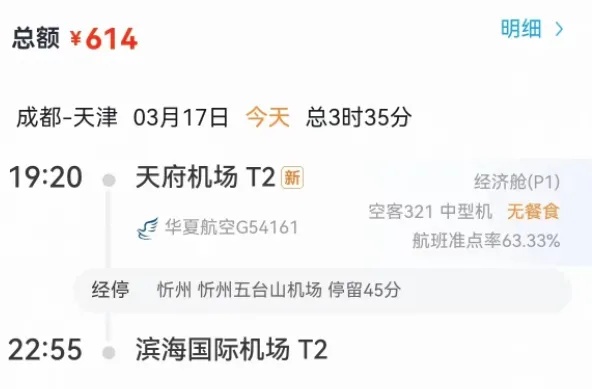 在华夏航空公司购买机票后