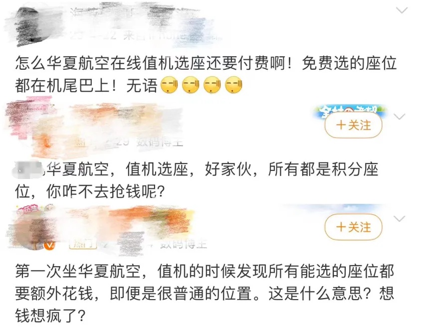 质疑华夏航空公司“付费选座”
