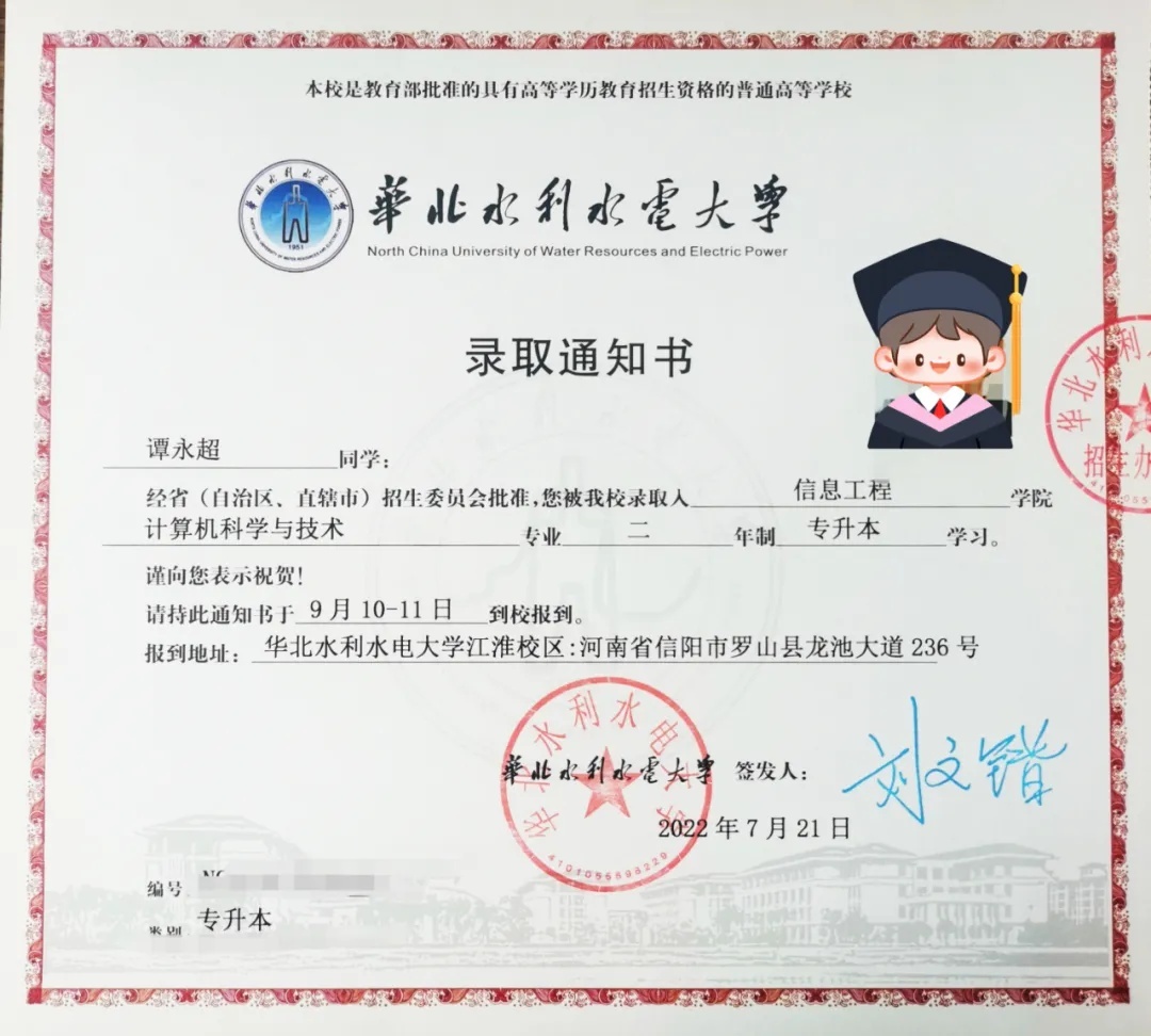 考上了华北水利水电大学