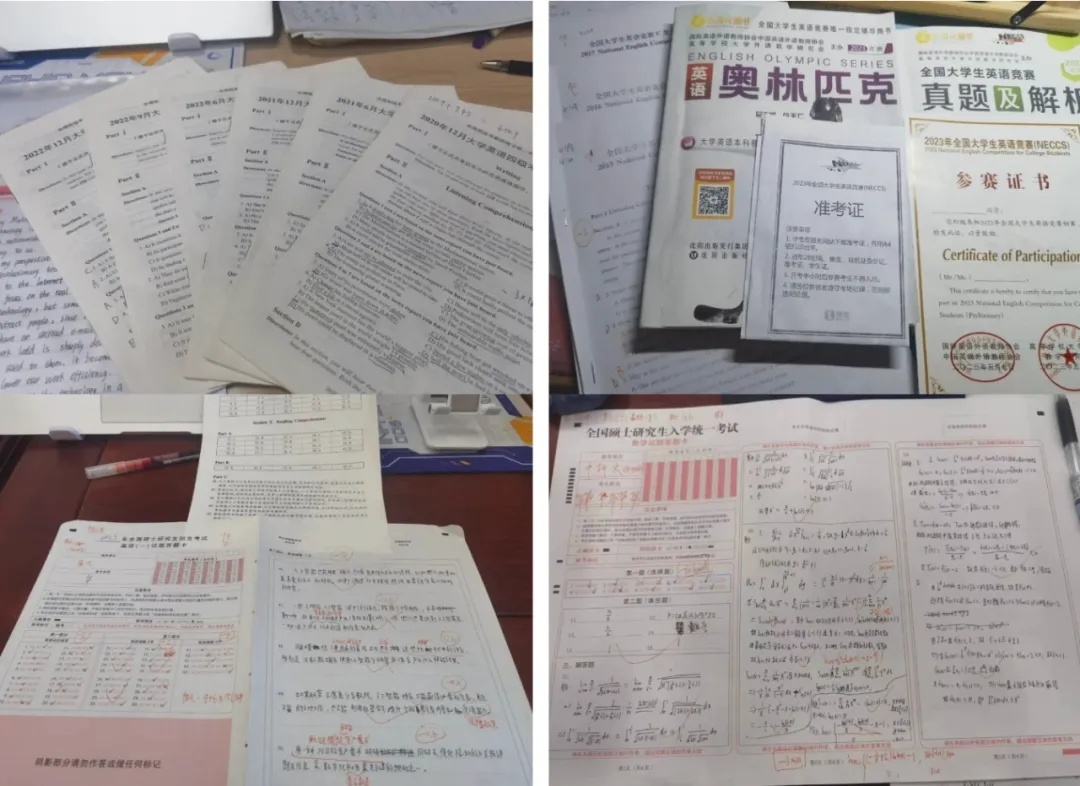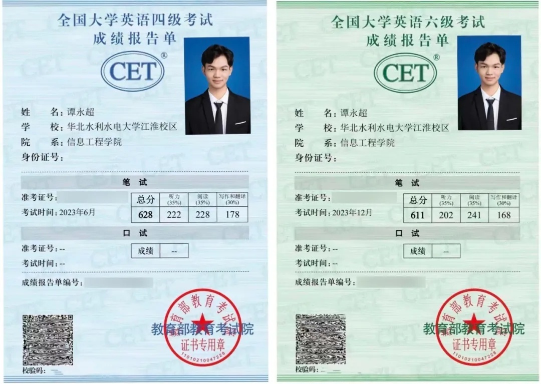他的四六级考试成绩均达到600+分