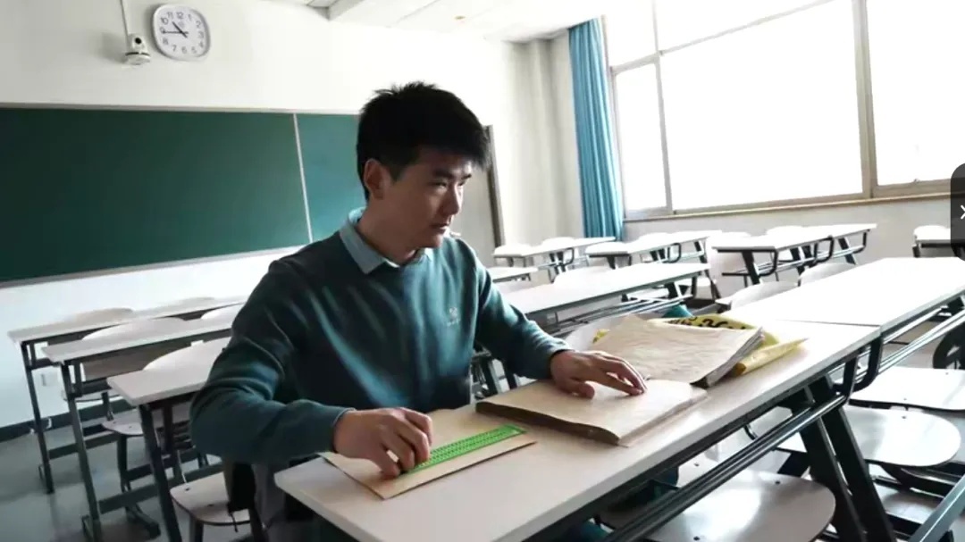 意味着他的盲文摸读速度