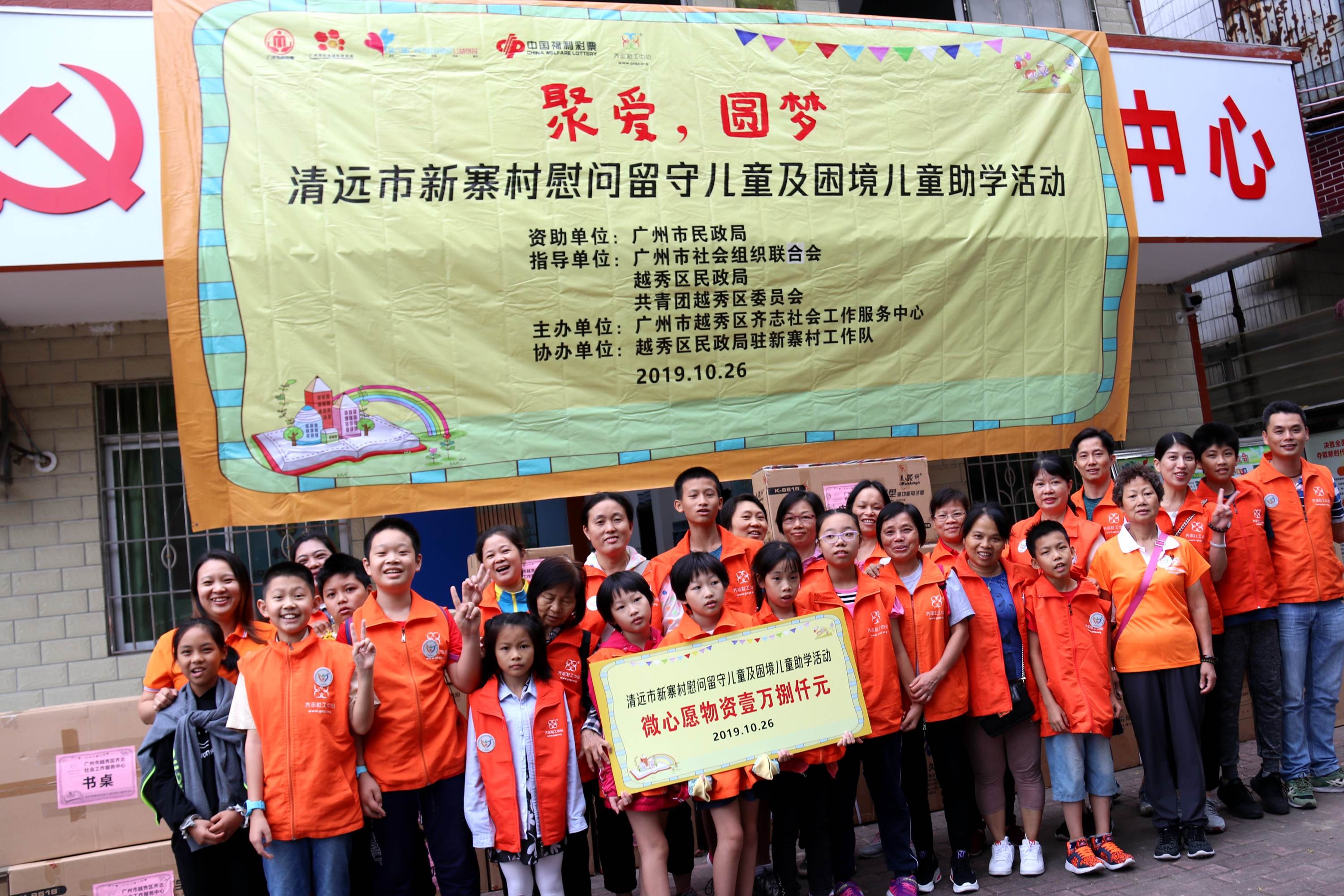 “牵手阅读”游历活动是让留守儿童走进广州来,清远市新寨村慰问留守儿童和困境儿童助学活动则是让广州越秀的困境儿童走进山区,成为齐志的一名志愿者代表,深入了解贫困地区留守儿童的实际情况并对其进行慰问。 10月26日,“聚爱,圆梦”清远市新寨村慰问留守儿童和困境儿童助学活动在清新区浸潭镇新寨村开展,本次助学活动创新性地与第六届广州市社会组织公益创投项目“护苗计划--为困境儿童齐筑童梦”游历计划相结合,让来自越秀区的八户困境儿童家庭成为志愿者代表,从受助者到帮助者角色的转换,从中体验角色转换后所带来不同的感受,真正亲身体验到帮助别人所带来的快乐,更重要是让困境儿童家庭体会到自己的价值,提升自身价值感,从而变得更加自信,提升多帮助别人的意识。走进越秀区民政局对口扶贫村与新寨村留守儿童一起相互交流,本次活动为22名新寨村留守儿童完成“微心愿”。