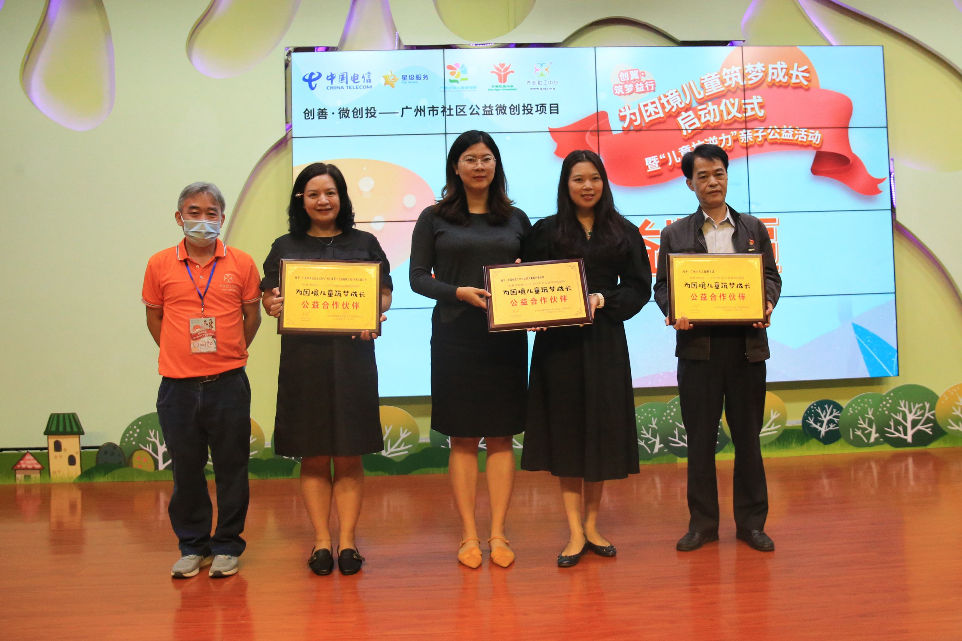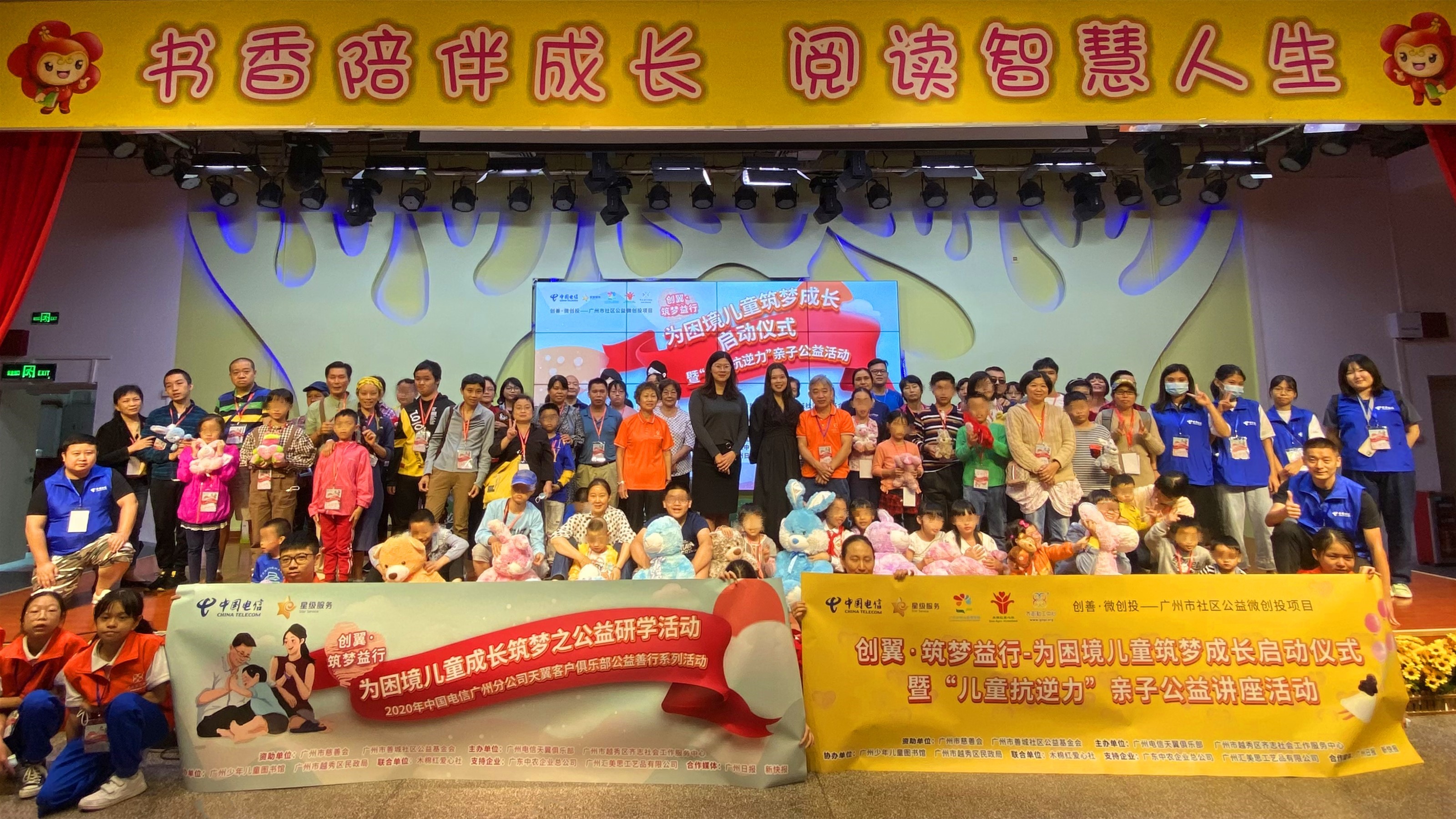 2020年11月8日上午,由广州市慈善会、广州市善城社区公益基金会资助,广州电信天翼俱乐部与广州市越秀区齐志社会工作服务中心联合主办的创翼·筑梦益行“为困境儿童筑梦成长”启动仪式,在广州少年儿童图书馆三楼报告厅举行。本项目活动除了获得创善·微创投——广州市社区公益微创投项目资助,还得到了广州少年儿童图书馆、越秀区民政局、广东中农企业总公司、广州汇美思工艺品有限公司、木棉红爱心社的大力支持,主协办单位领导嘉宾、越秀区80多名困境儿童和家长、爱心人士、志愿者共约150人参与了启动仪式。