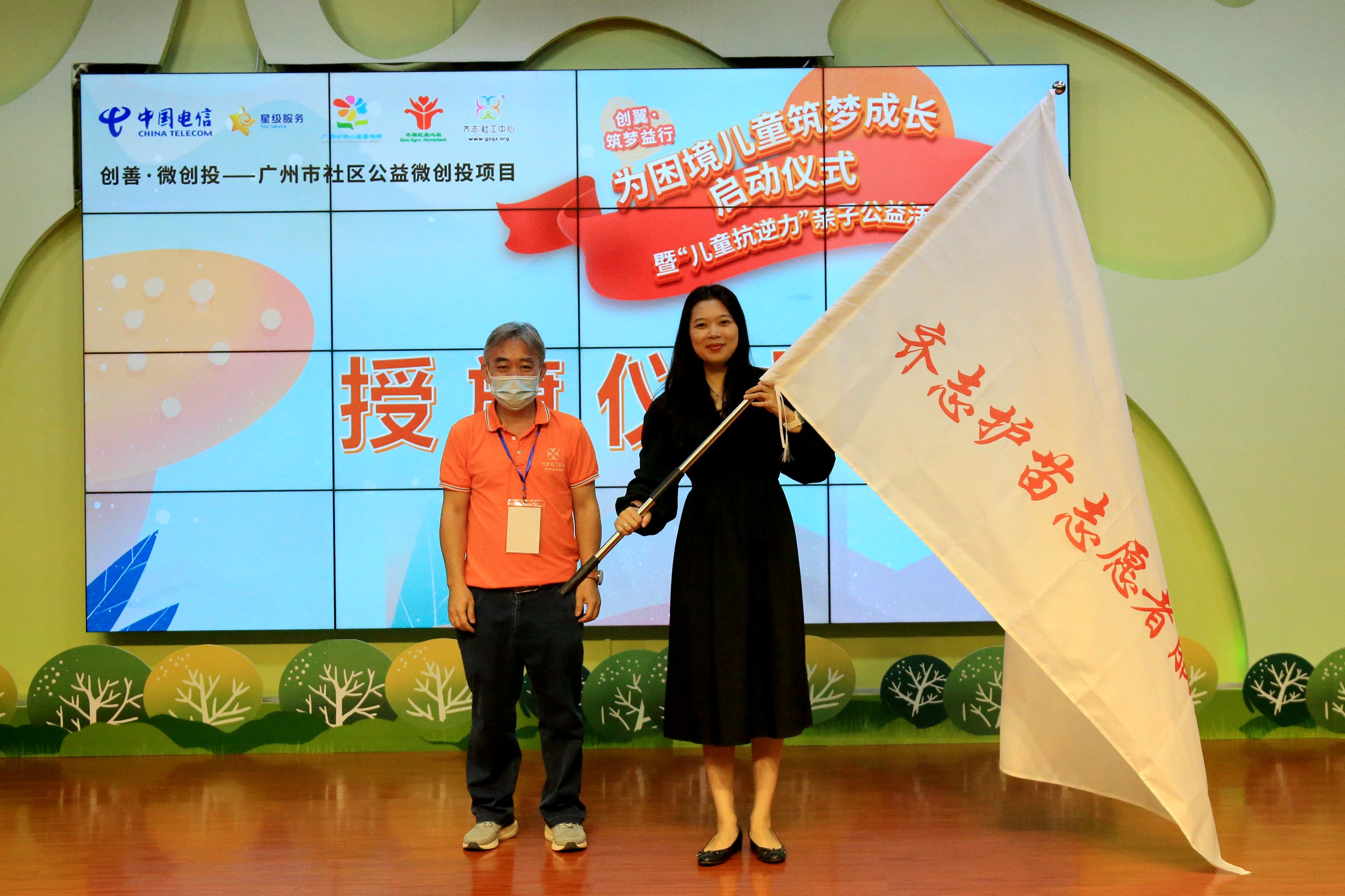李晓辉表示,接下来的3个月内,齐志将继续为越秀区为主的困境儿童开展20节的“抗逆力课堂”和3场亲子沟通公益讲座及20人次的个案管理服务。希望可以通过开展儿童抗逆力系列课程,多方面培养儿童的抗逆力,增强应对困难、挫折和逆境的能力。为了培育社区护苗志愿者,以党建工作为引领,发展更多的爱心企业员工、本次还组建了“齐志护苗志愿服务队”。李晓辉为广州电信天翼俱乐部志愿者代表授旗,希望后续能有更多爱心企业、热心人士、服务对象可以加入社区志愿者,为困境儿童提供优质的志愿服务。