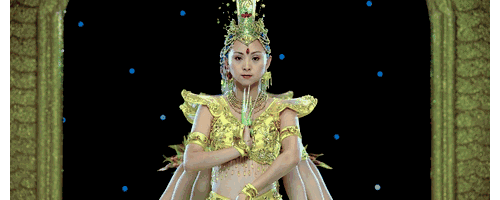 共21位平均年龄17岁的聋哑人,最小的只有13岁,以知名残疾人舞蹈演员邰丽华为首,立于莲花台上,创造出千手观音的形象。从千手显现,魔幻变手,再到分队上演“三头六臂献慈爱”,五彩夺目的灯光中,菩萨面目和善,嘴角露出微笑,向世人传递良善。