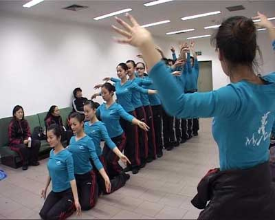 千手的难点在于,不同演员需要精确找到自己的动作位置,一个一个叠上去,差一点便容易乱掉。指导老师干脆每次排练都录下来,一遍结束后给大家放录像看,检查自己的错误在哪。