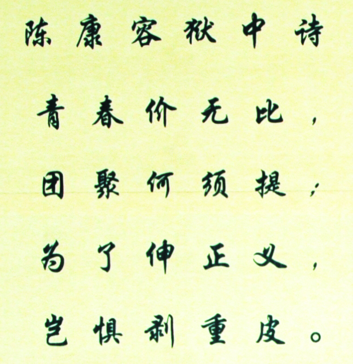 厦门沦陷后,她受组织派遣,来到当时闽粤赣抗日救亡中心的龙岩白土,参加中共闽西南特委举办的抗日救亡骨干训练班,改名康容。毕业后,陈康容受特委指派回到老家金丰大山地区坚持敌后游击战争,任岐岭党支部宣传委员、支部书记。她以小学教员的身份,在霞山村组织起敌后委员会及抗日救亡剧团,进行抗日宣传活动。1940年皖南事变后,闽西国民党反动派掀起反共高潮,陈康容不幸被捕。敌人企图利用她思念幼子的母爱之心对她进行诱降,并威胁她说:“限你三天写好,不然剥你的皮!”三天后,敌人到牢房向陈康容取自首书,只见纸上写着四行诗句:“青春价无比,团聚何须提?为了申正义,何惧剥重皮!”敌人见诱降无用,便对陈康容进行严刑拷打。陈康容大义凛然,坚贞不屈。黔驴技穷的保安团最终对她下了毒手。1940年9月17日,陈康容在永定抚市英勇就义,年仅25岁。 1944年11月,永定爱国志士在金丰大山组织了一支抗日反顽游击队,队名为“康容支队”,以纪念这位英勇的女战士。(蓝松英/整理 蒋红婴/图)