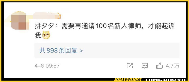 不少网友在下面留言调侃:需要再邀请100名新人律师才能起诉成功。