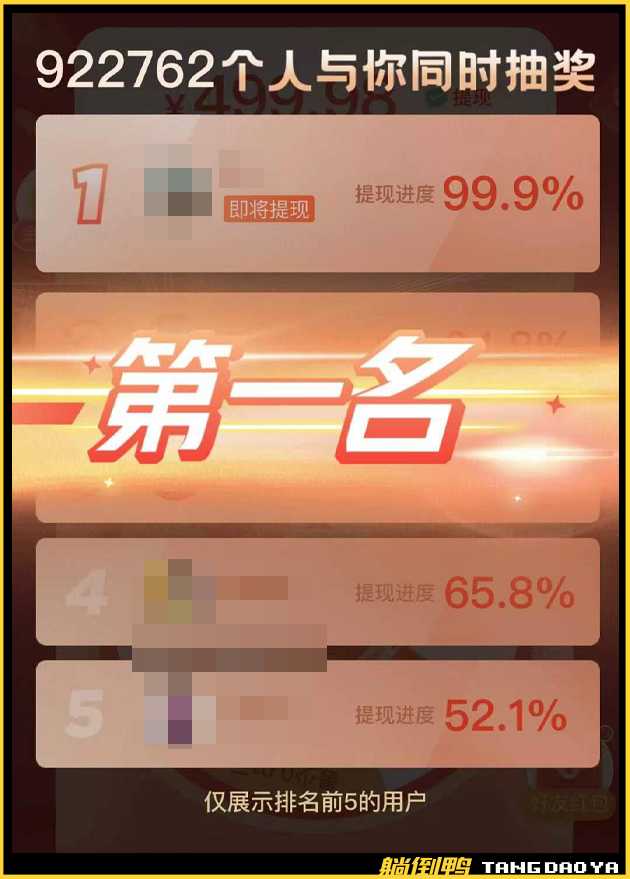 一开始我是不打算理会的,就在我准备退出的时候,它提示我正在和92万网友一同抽奖竞技,而且我的提现进度还是第一名!