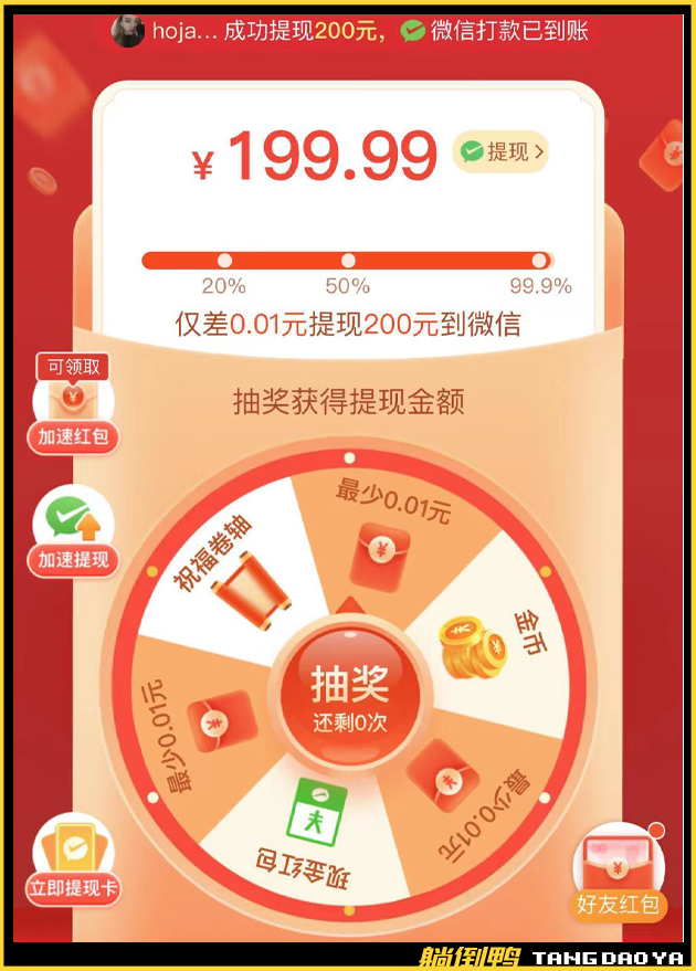 这期间,它会通过不停滚动提现成功的名单,以及好友提现的方式,疯狂刺激你,让你难以放弃。
