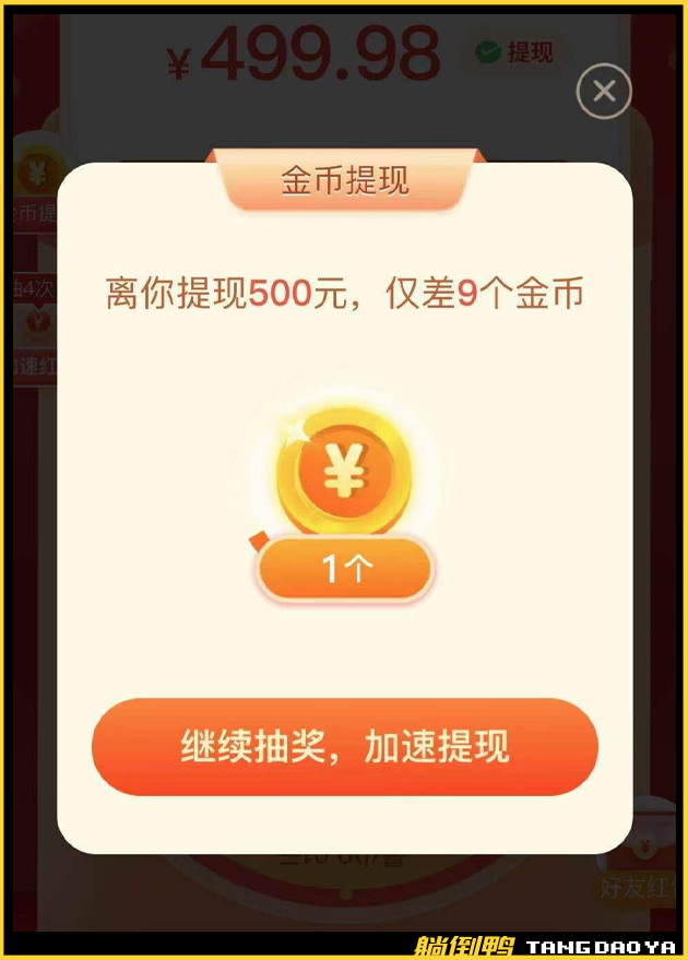 10金币=0.01元10次抽奖=邀请10人助力也就是说,你看上去只要再邀请9个人,攒齐金币,就能获得最后的一分钱了。